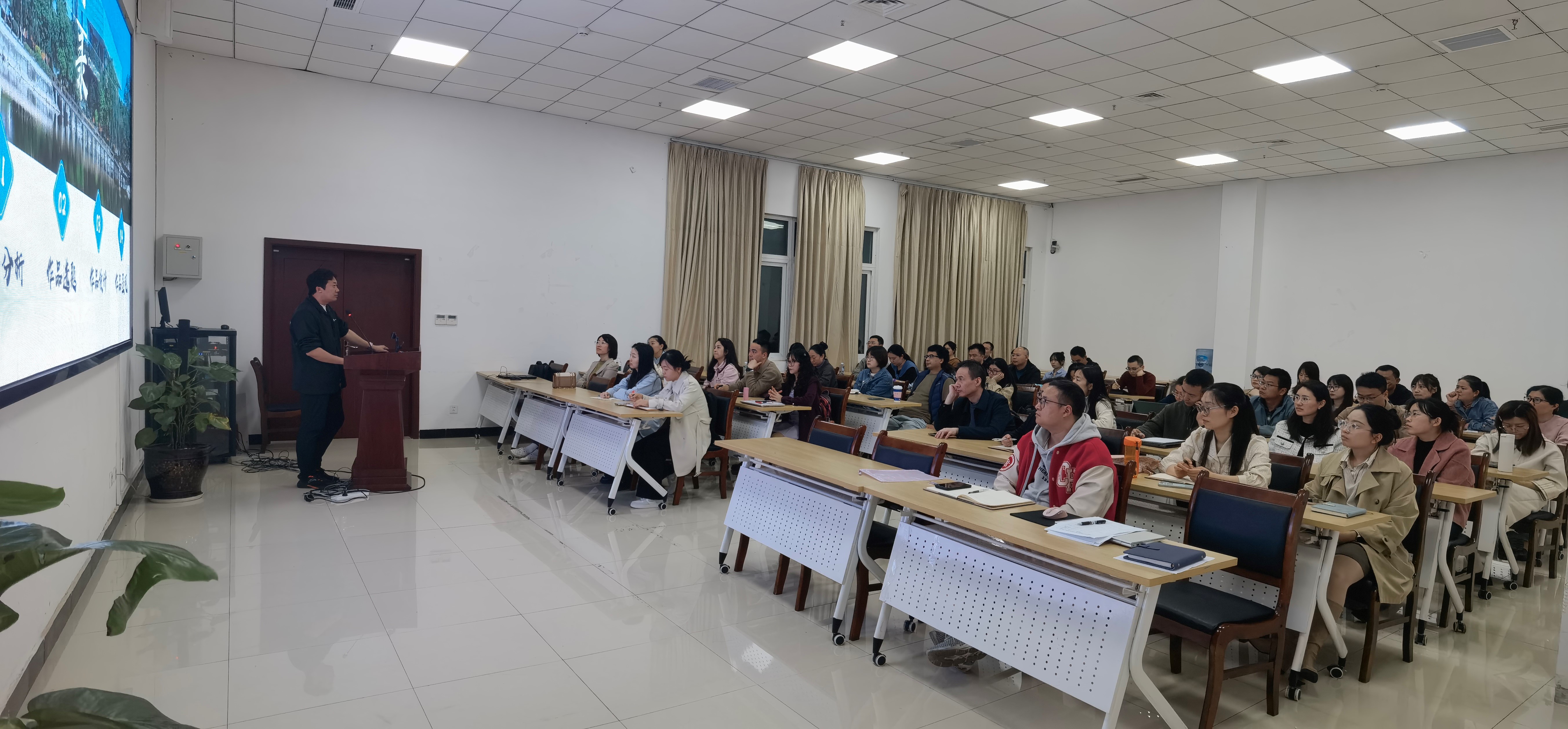 本次培训邀请校内指导团队进行备赛交流和现场说课示范,吸引了本年度参赛教师70余人现场参培。培训内容从把握教学能力比赛的核心导向、精准定位高价值选题、系统打造有竞争力作品、作品展示要点和备赛技巧等多个方面进行分享。