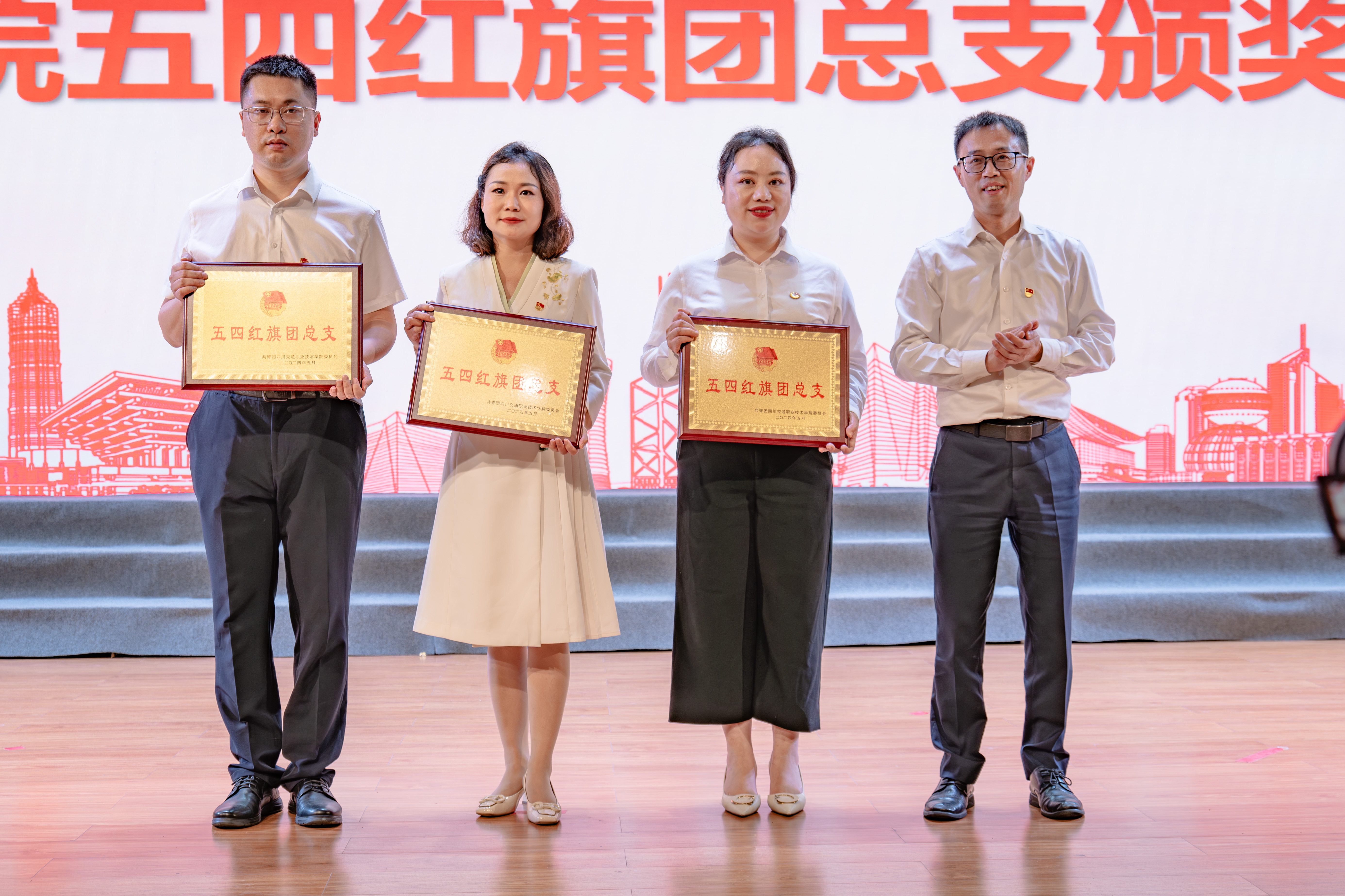 学院党委副书记、院长陈斌为五四红旗团总支获得者颁奖