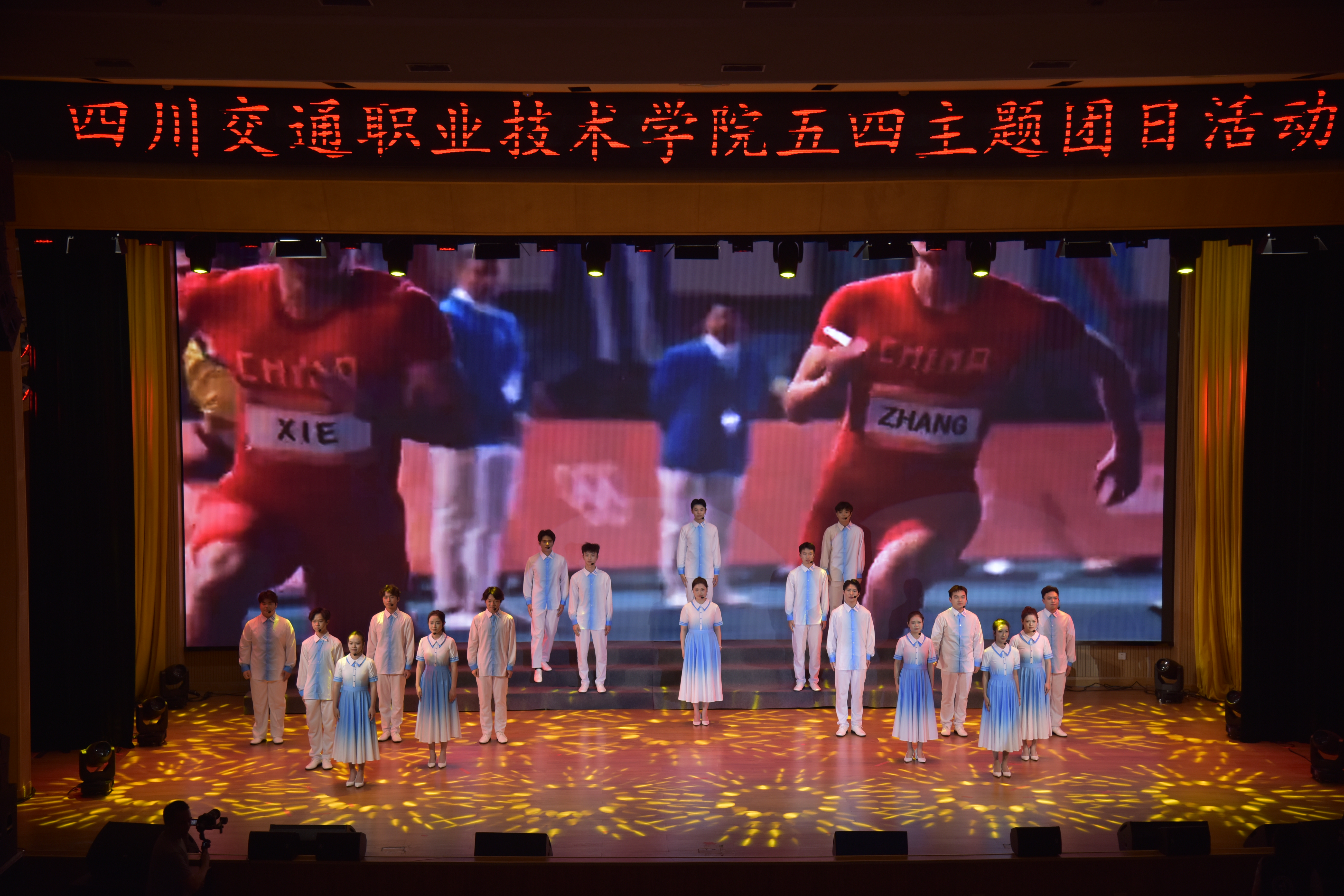 在“铭记历史 高擎旗帜”、“牢记嘱托 青春奋斗”、“感恩奋进 强国有我”等篇章里,舞蹈《有我》、《礼赞新时代》、主题分享《青春的对白》、配乐朗诵《砥砺青春》等精彩节目相继上演,同学们用艺术的形式缅怀那些披荆斩棘、铸就时代的前辈们,展现新时代、新青年的风采与活力,表达了继承弘扬五四精神,为实现中华民族伟大复兴中国梦贡献青春力量的决心。