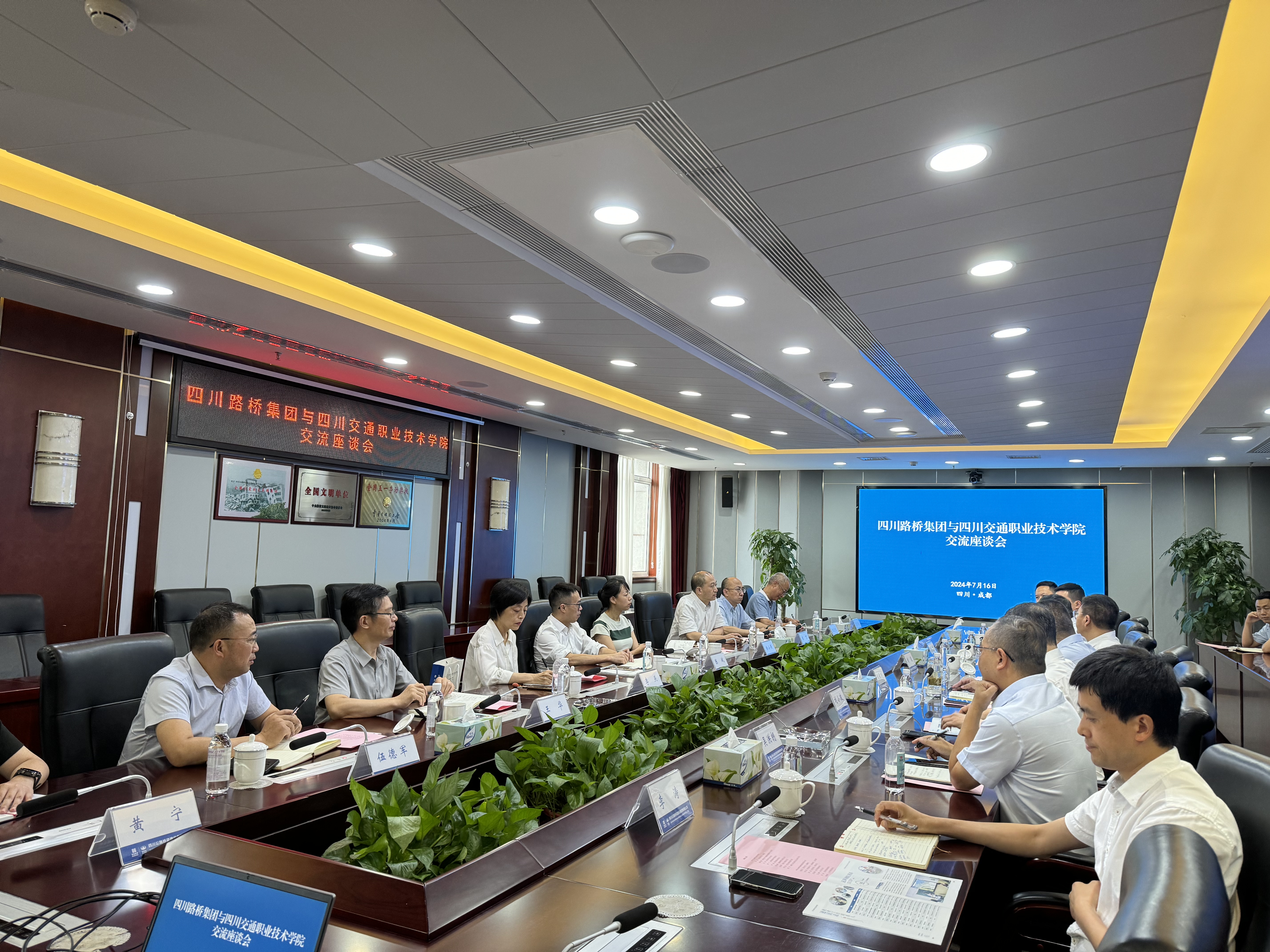 7月17日,学院党委副书记、院长陈斌带队,学院相关部门、教学系部一行到四川公路桥梁建设集团有限公司进行座谈交流,四川公路桥梁建设集团党委书记、董事长张航川,党委副书记、副董事长、总经理刘小波,党委委员、纪委书记黄晟以及集团相关部门负责人出席会议。