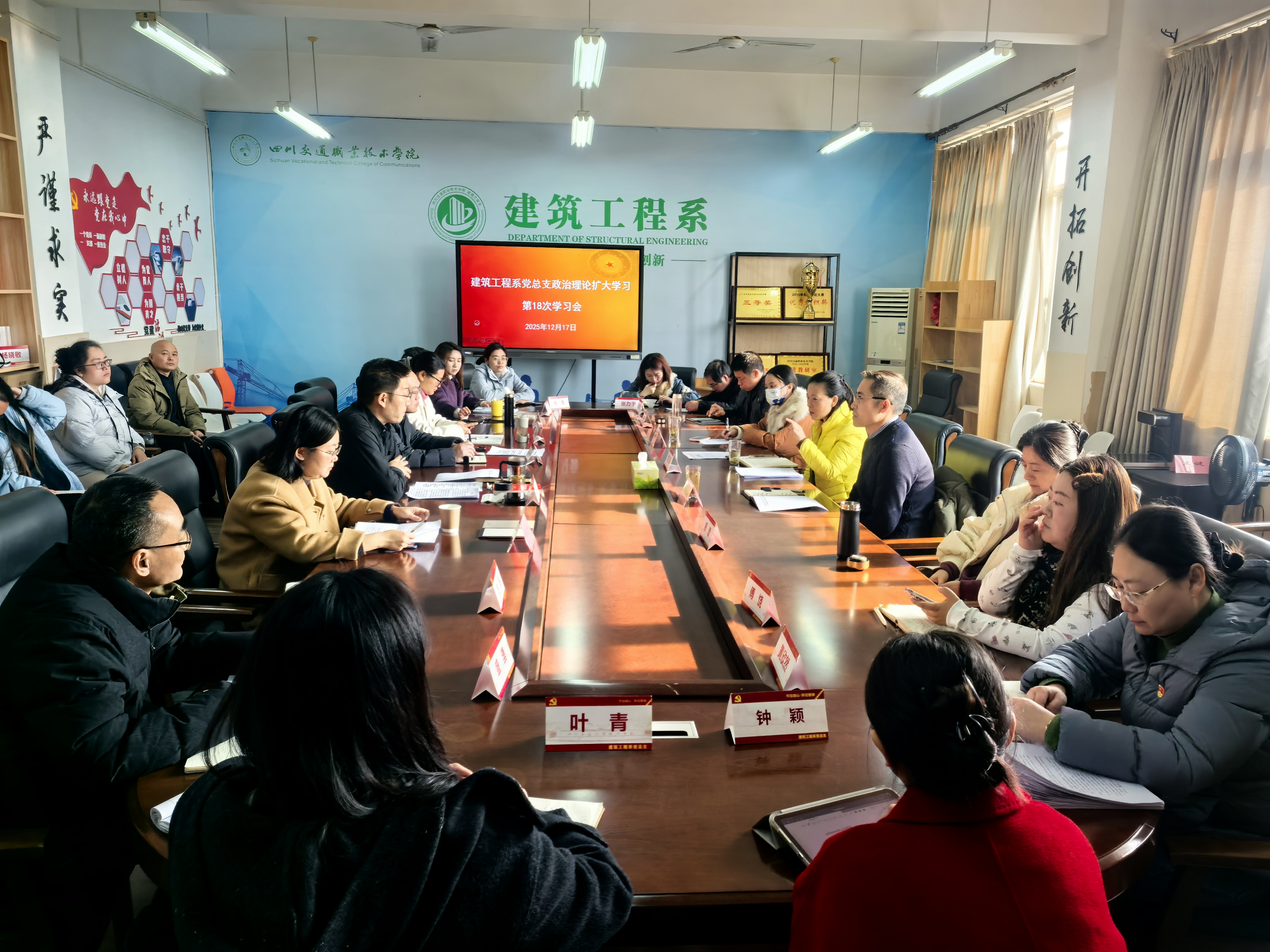 2025年12月17日上午,beat365唯一官方网站建筑工程系第18次党总支政治理论学习(扩大)会议在笃行楼610会议室召开。系党总支书记周凯同志主持,学院副院长刘玉荣同志以党员身份参加并指导,学院党委教师工作部部长黄蜀云,党委宣传统战部相关人员出席会议。系班子成员、全体党员同志参会。
