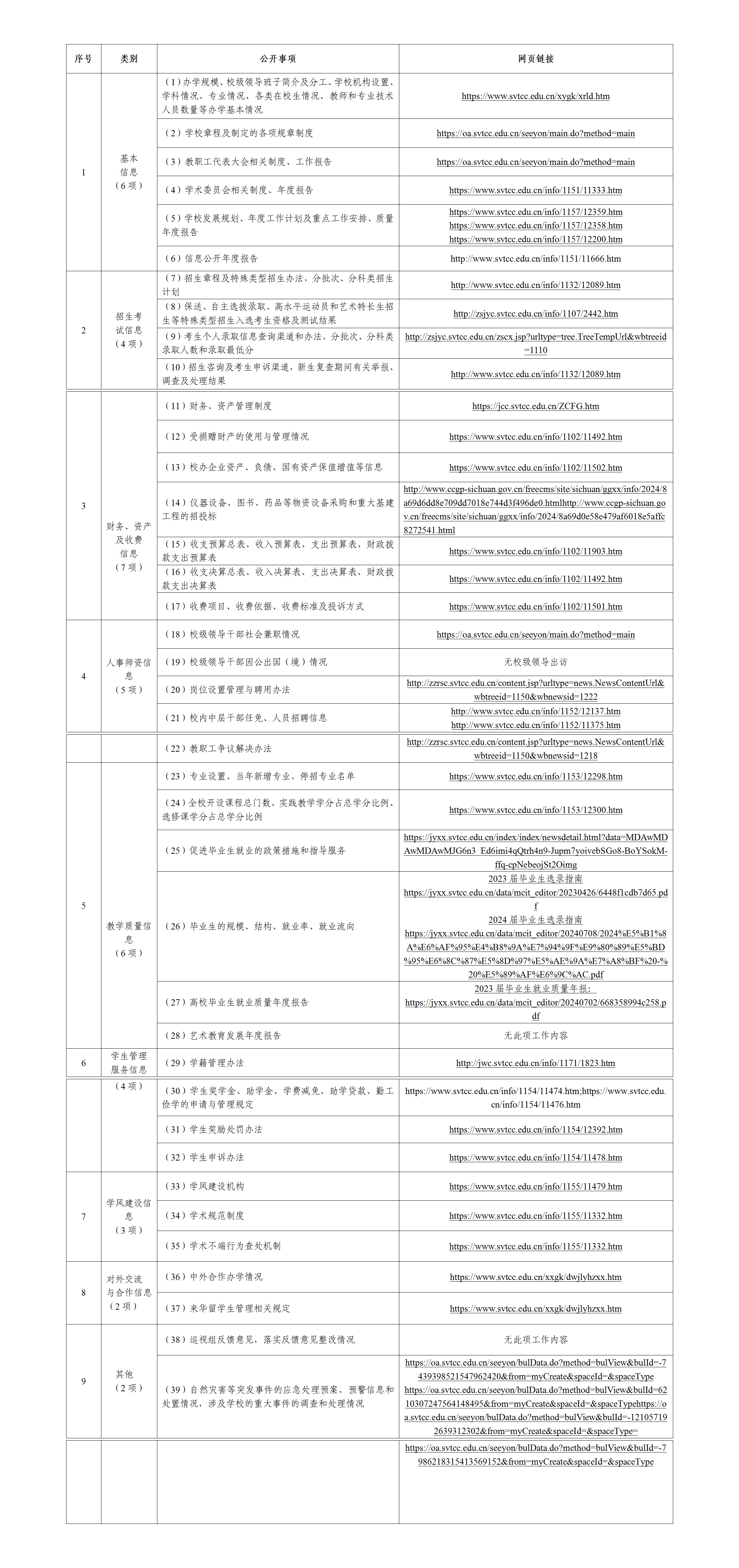 5.教学信息公开。共发布信息6条。面向社会和全院教职员工在学校官网信息公开栏公开公布了学院2024年专业开设情况和学院2023-2024学年课程开设情况等信息。