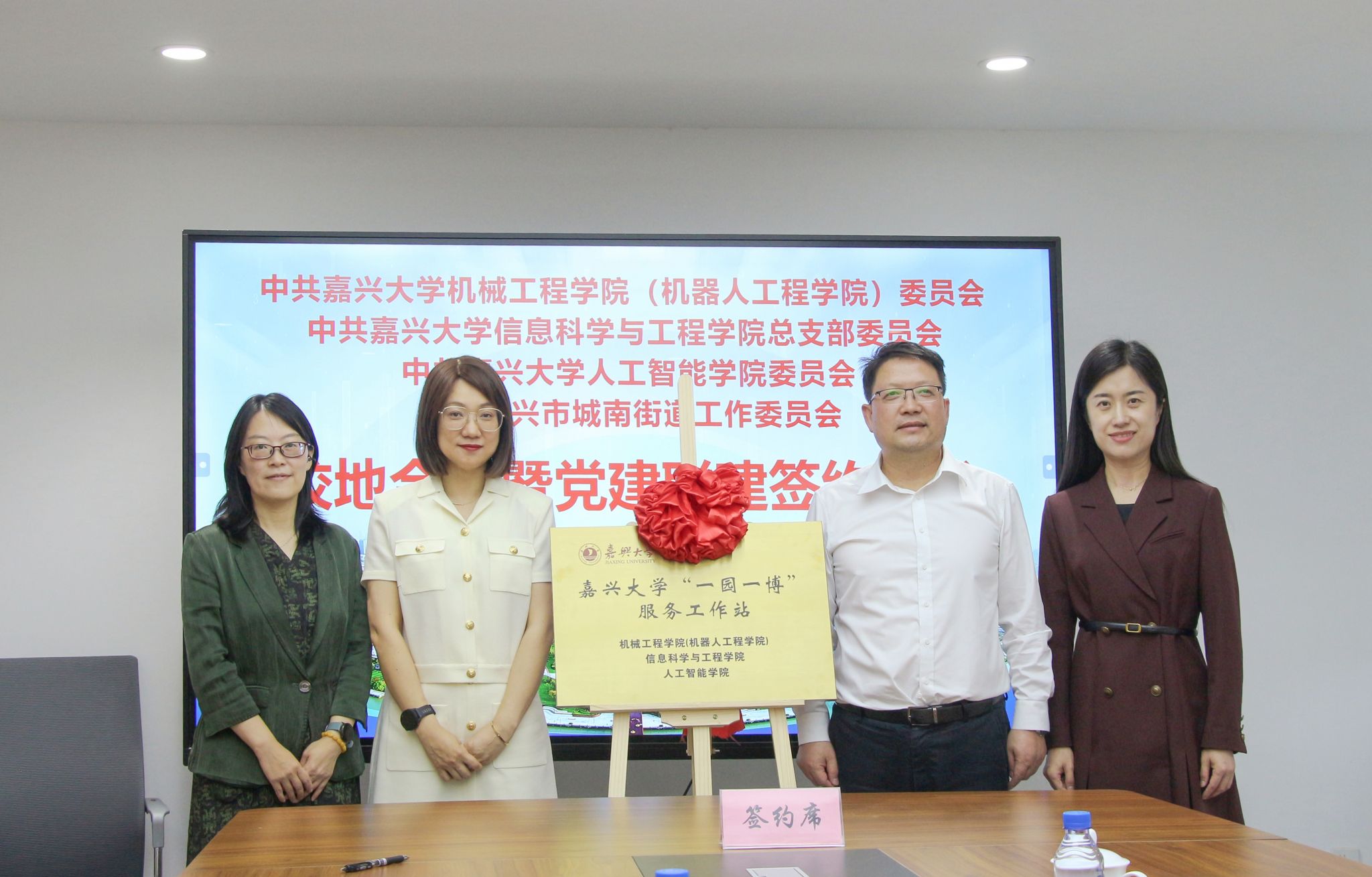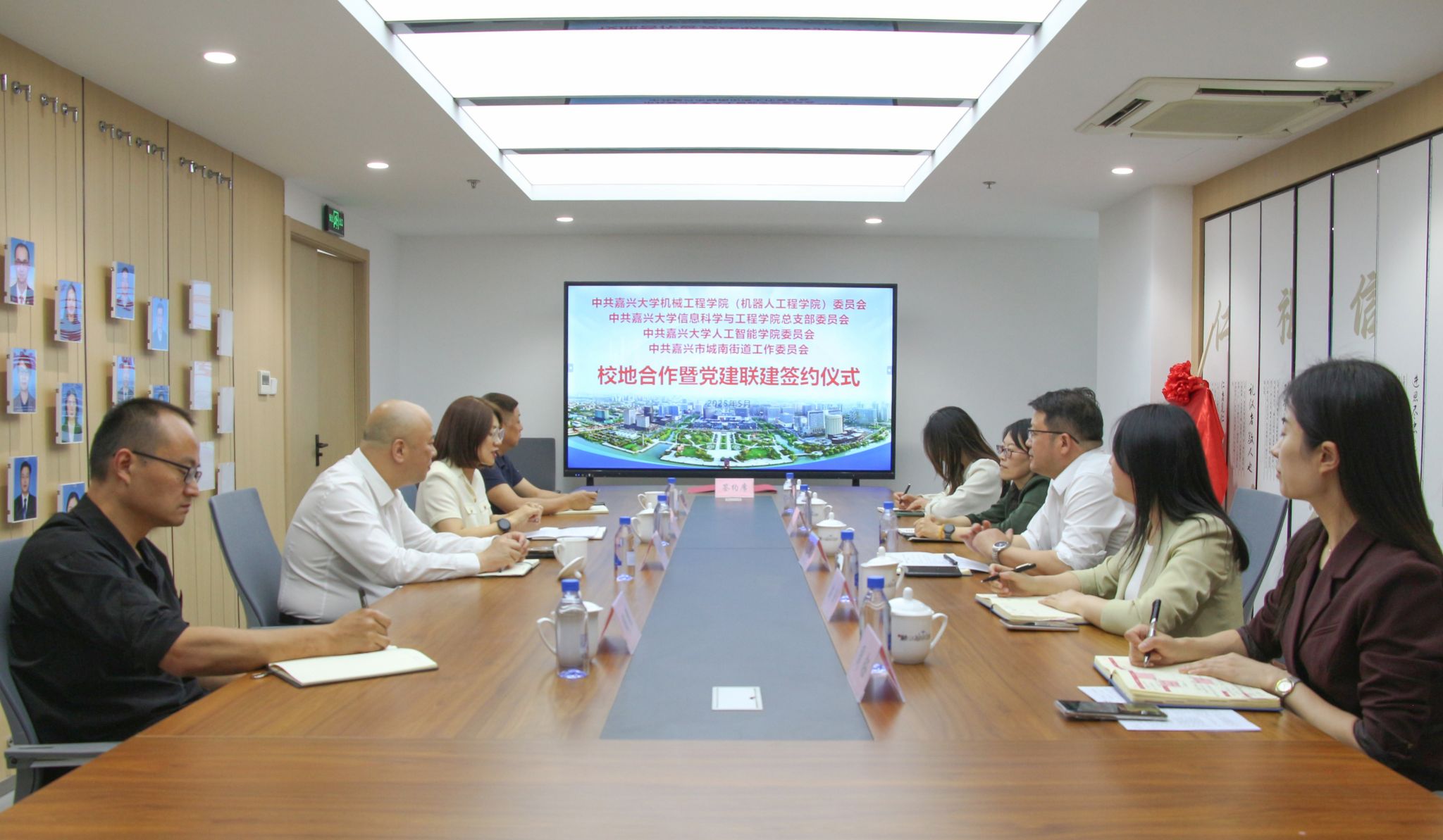 5月13日下午,PA官网PA集团官方网站、信息科学与工程学院、人工智能学院与嘉兴市城南街道“一园一博”服务工作站启动暨校地合作签约仪式在城南街道党群服务中心举行。城南街道党工委书记韩峻,党工委副书记、办事处主任何瑛,党工委委员周翟,人大工委副主任蒋献伟,PA官网PA集团官方网站院长朱耀东、党委书记战昕,信息科学与工程学院党总支书记朱奕远,人工智能学院党委书记周钰等出席活动。