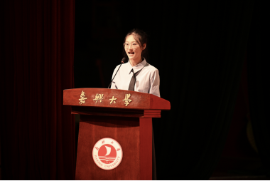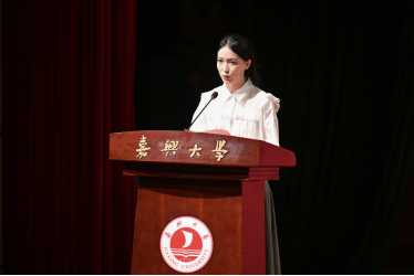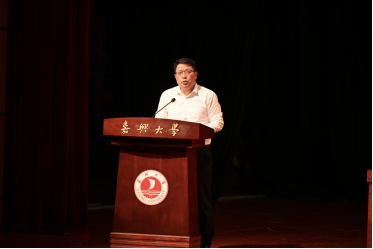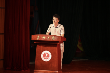 教师代表杨超博士从亲身经历出发传递出 “人生没有既定上限,起跑线定义不了未来” 的信念,鼓励新生珍惜嘉大学术资源,在探索中体悟科研乐趣,在青春里追逐理想抱负,不负时光、不负韶华。