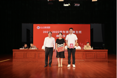 伴随着庄严的国歌声,典礼正式拉开帷幕。首先,院长朱耀东为2024-2025学年优秀班主任颁发荣誉证书。接着,学院领导为2025级新生班主任与班级助理颁发聘任证书。新生班主任将以“引路人”的身份,在学业规划、生活适应、思想成长等方面为新生提供精准指导;班级助理则通过分享校园经验、协助日常管理,为新生快速融入大学集体、适应校园生活搭建起坚实的帮扶桥梁。