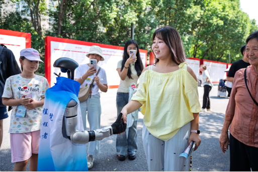此次迎新现场,两位特殊“志愿者”——人形机器人和机械狗成为焦点。人形机器人主动与新生握手互动,机械狗协助搬运行李,科技展示引来阵阵惊叹。来自新生李同学直呼:“太酷了!对未来的专业学习更期待了。”这场迎新活动既彰显了学院学科特色,也让新生直观感受到智能装备的魅力,为迎新注入科技活力,有效激发了新生对专业的兴趣与热情。