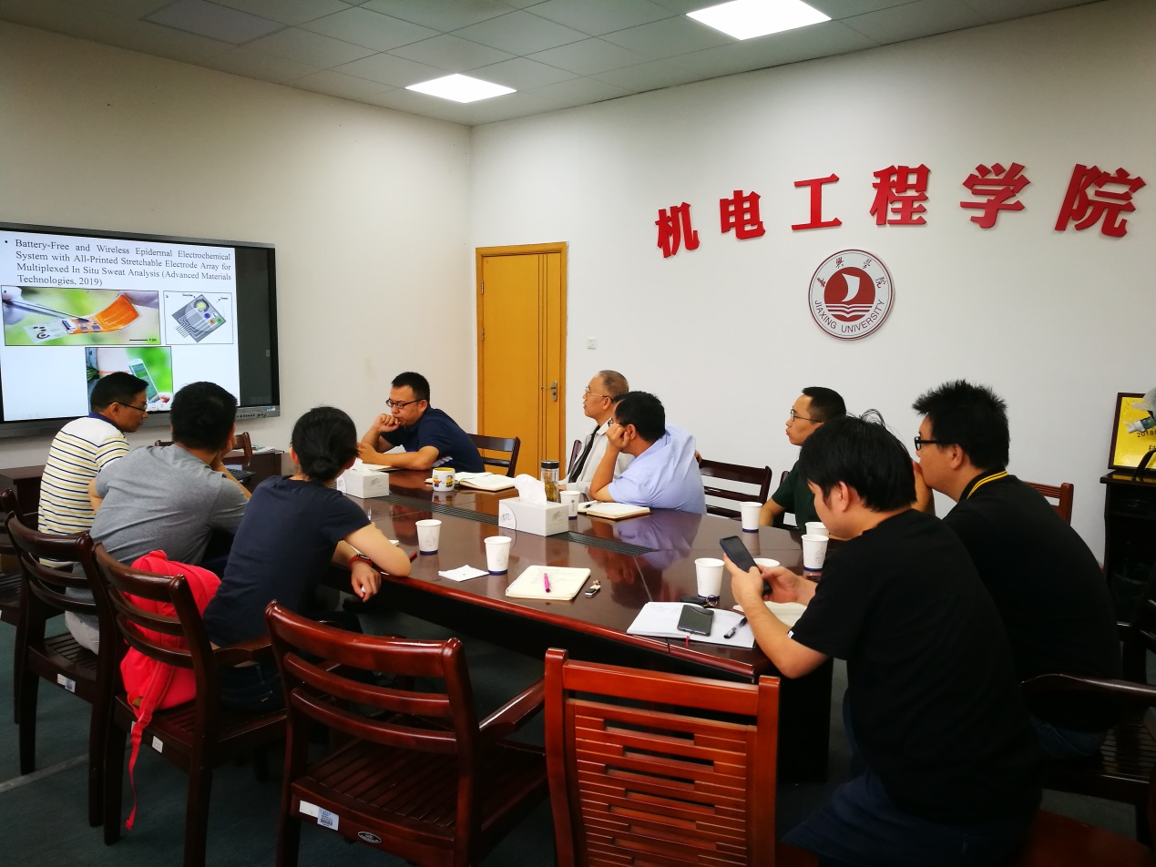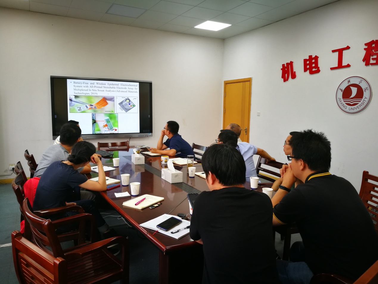 邢博,张礼兵和汤成莉三位博士分别作了题为《石墨烯掺杂纳米银导电墨水制备工艺》、《可穿戴柔性电子产品系统设计研究》和《活性银墨水研究》的讲座,讲述了目前的科研活动进展以及后续中期和长期的研究计划。