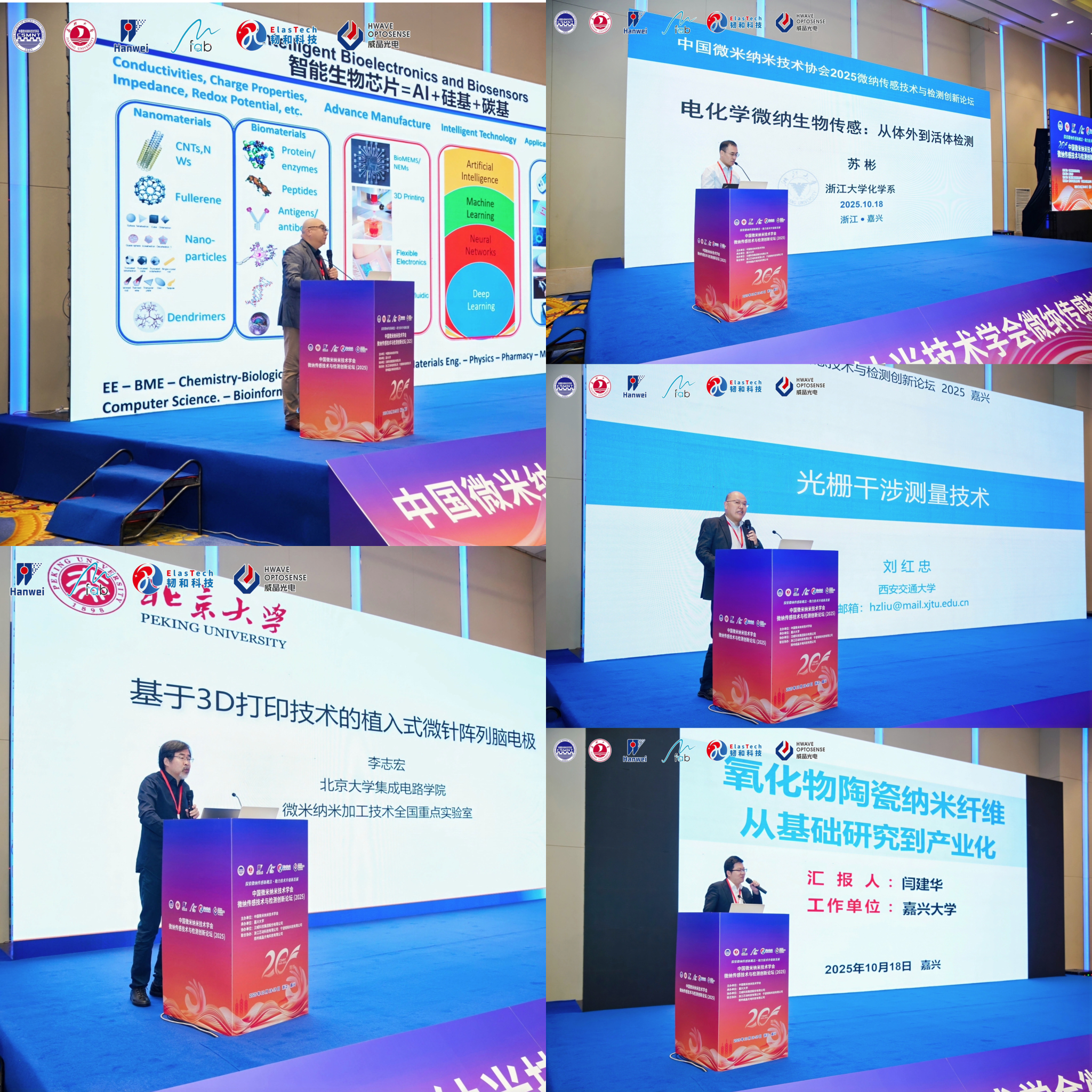 大会上,香港中文大学(深圳)李晨钟教授以《集成式生物传感器在细胞和器官芯片中的前沿应用》为题,李志宏教授以《基于3D打印技术的植入式微针阵列脑电极》为题,浙江大学苏彬教授以《电化学微纳生物传感-从体外到活体检测》为题,西安交通大学刘红忠教授以《光栅光干涉测量关键技术》为题,PA官网闫建华教授以《氧化物陶瓷纳米纤维-从基础研究到产业化》为题作主旨报告,分享最新的研究进展。